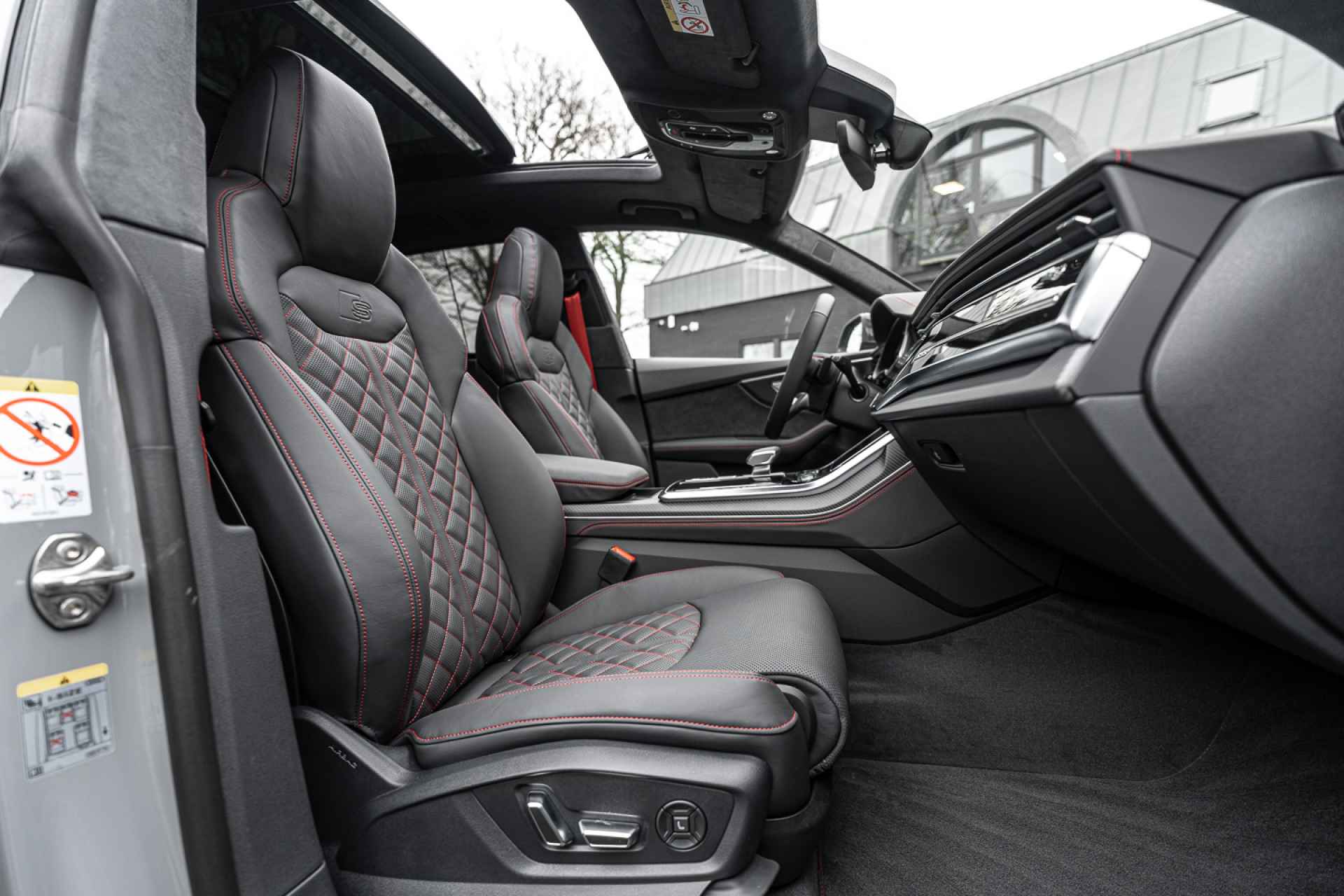 - Valcona lederen bekleding in geruit-design met rode stiksels (Audi Sport)