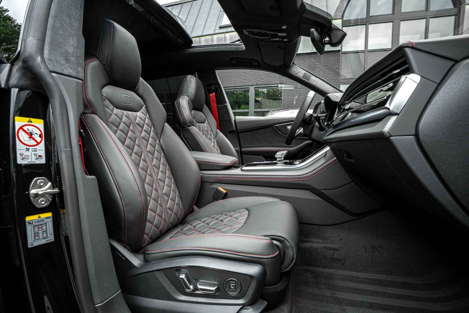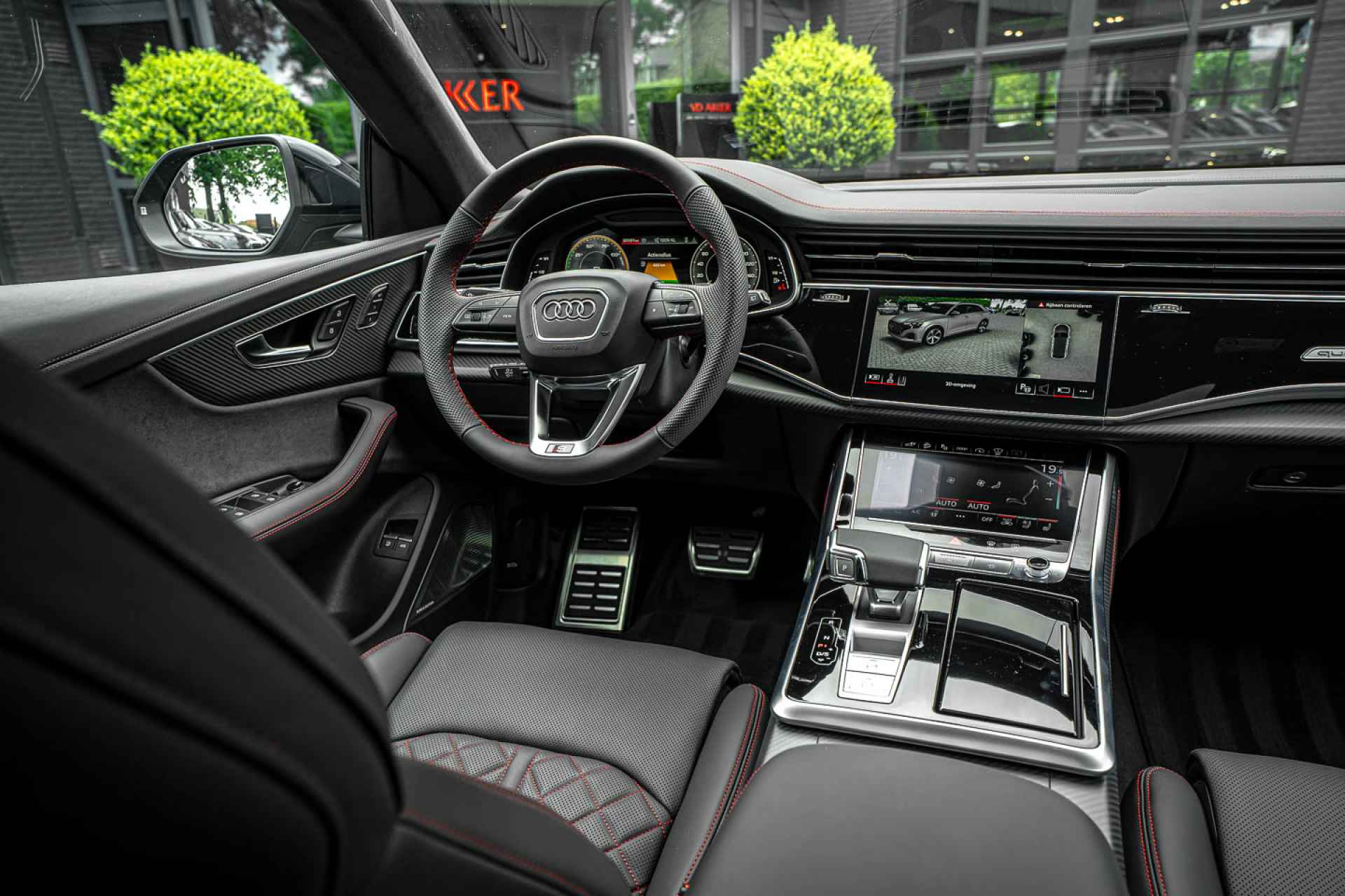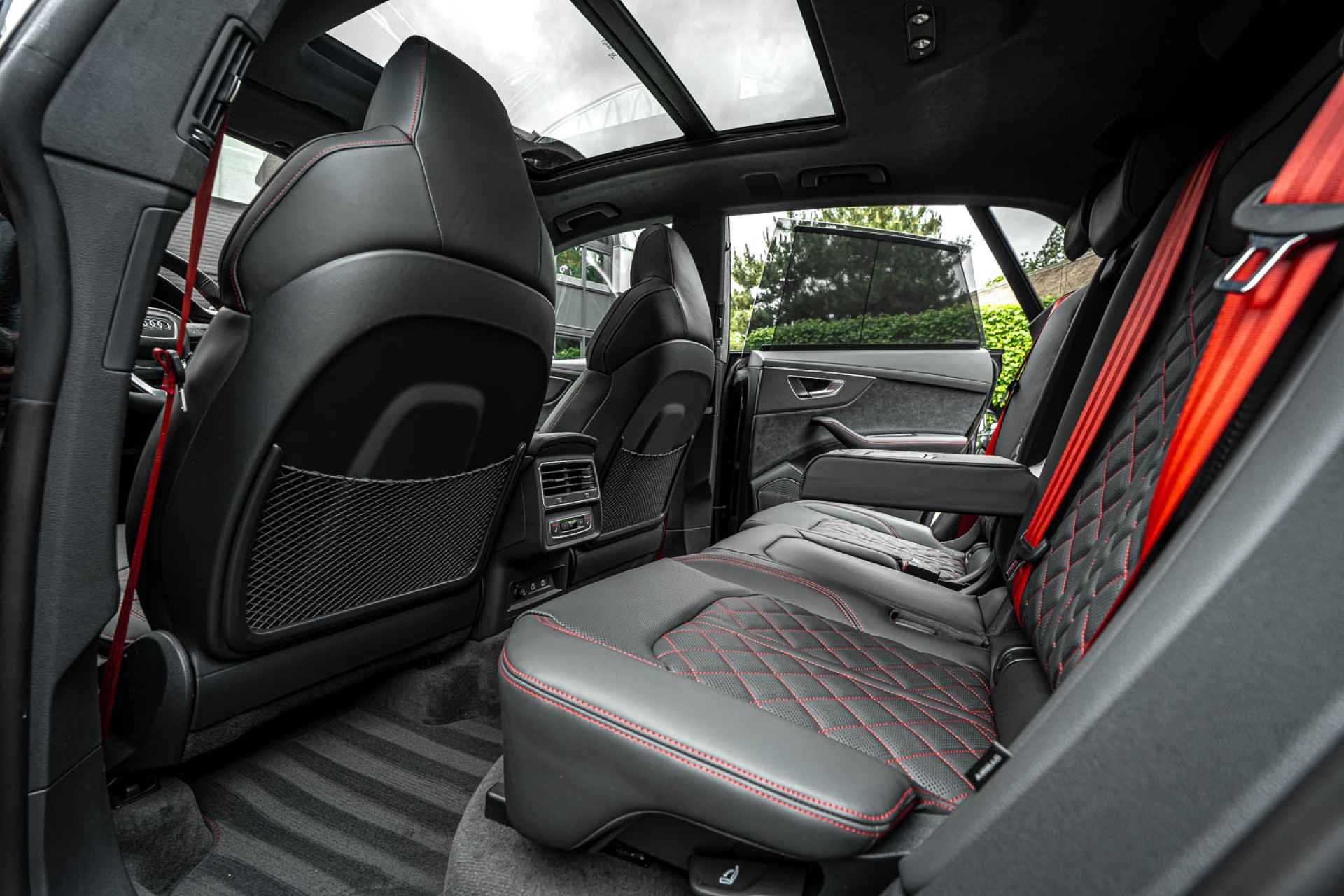 - Valcona lederen bekleding in geruit-design met rode stiksels (Audi Sport)